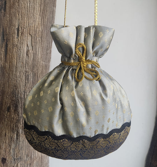 Grey Silk Potli - A Sustainable Potli Bag