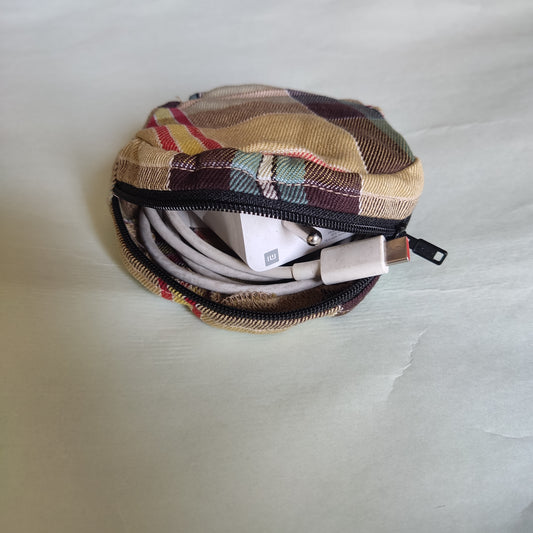 Navy Ochre Tweed Collection - Sustainable Mobile Charger Pouches - Set of 3